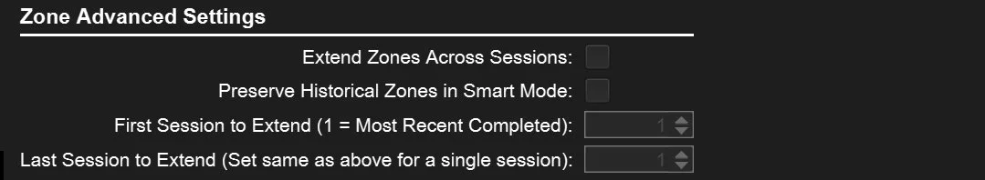 Last Session to Extend: Increasing this number will cut out previous session zones. Matching First Session To Extend will only extend zones from that session. I.e. a setting of 3 in both will only extend zones from 3 sessions ago.