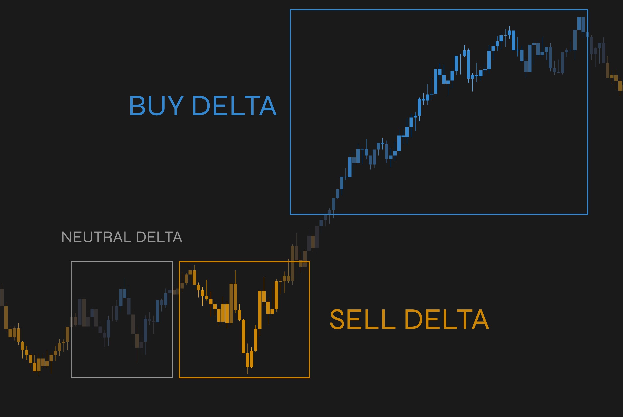 Trend Confirmation: Persistent delta alignment with price movement helps confirm trend direction. Strong positive delta in a rising market suggests sustained buyer control.